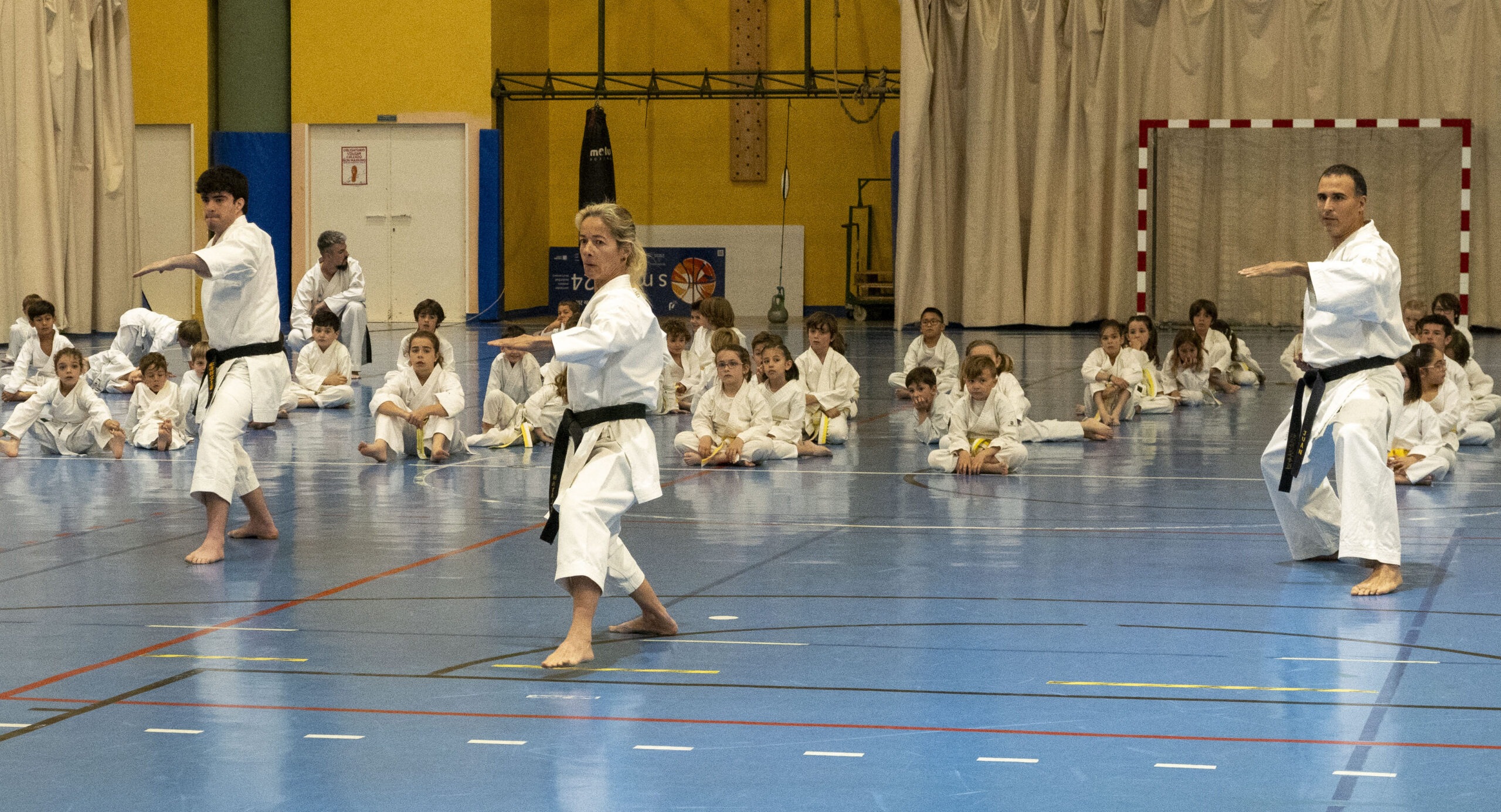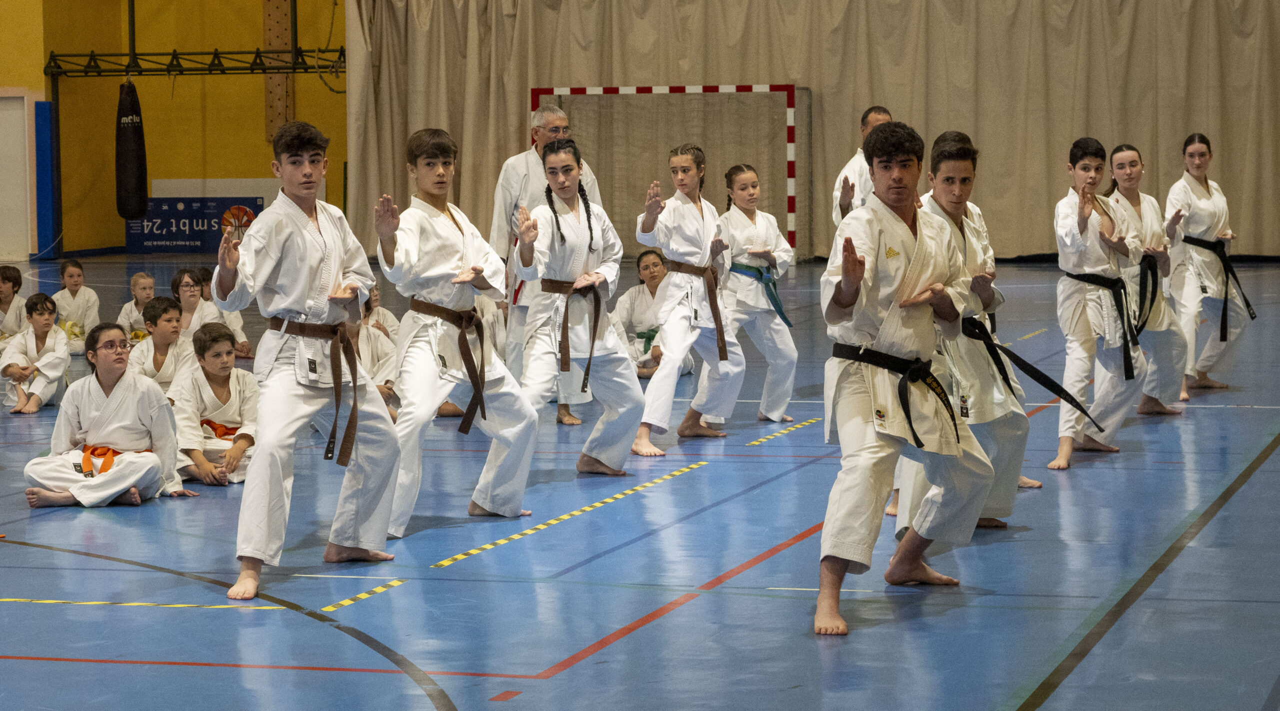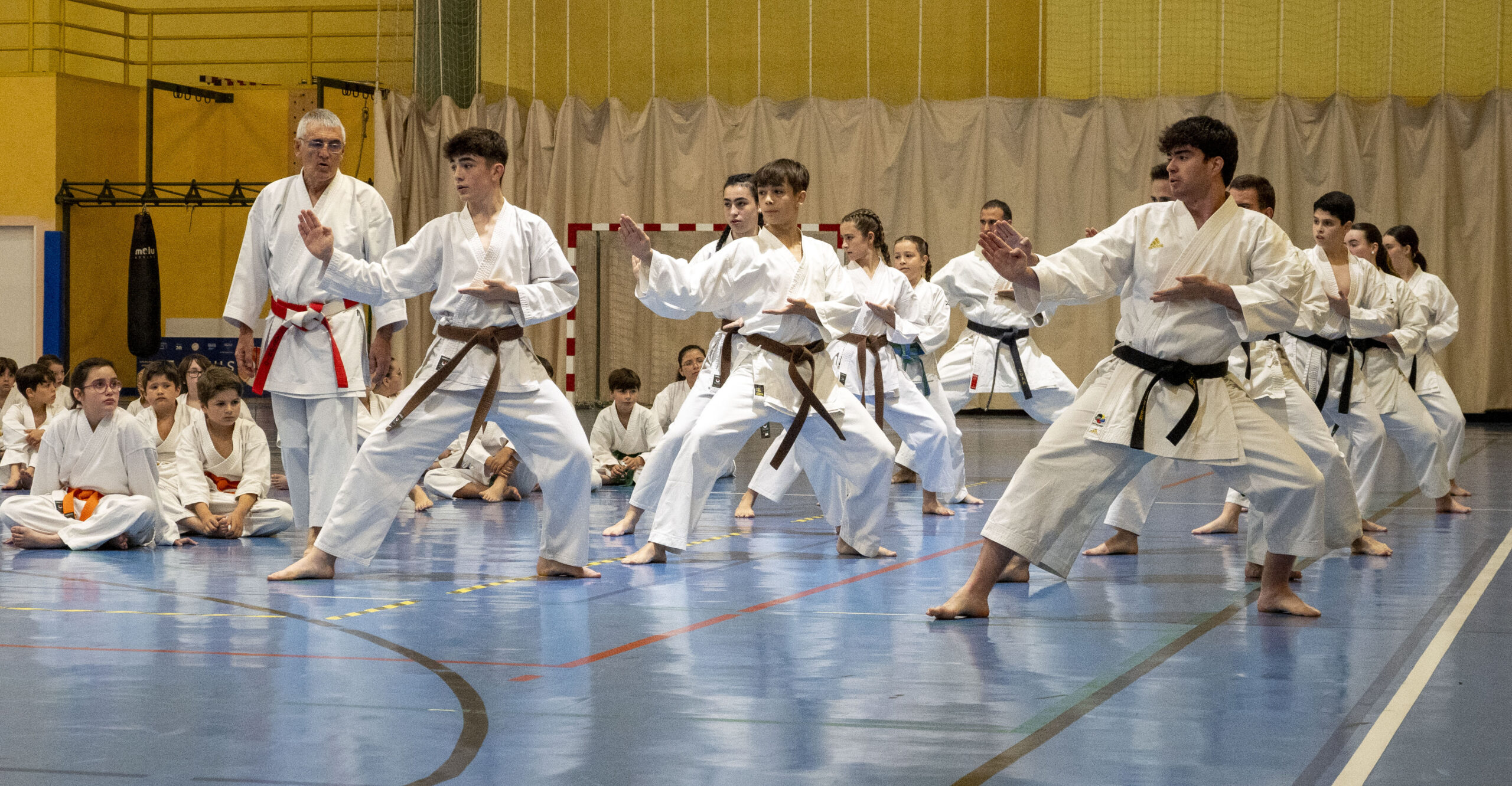 En la ejecución de las diferentes técnicas participaron karatekas de distintos grados, lo que permitió al numeroso público apreciar la evolución y recorrido de este arte marcial a medida que se avanza en su aprendizaje