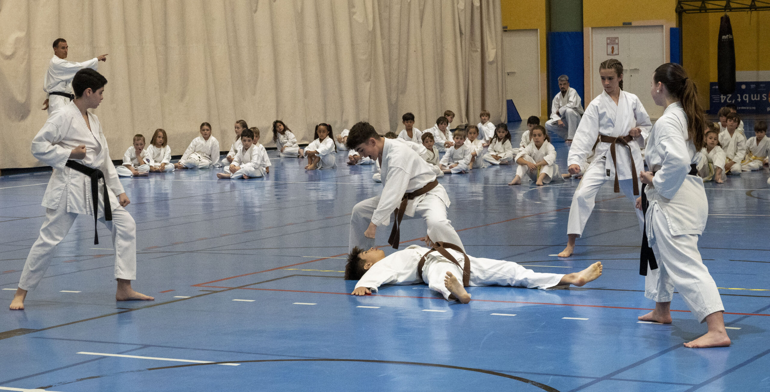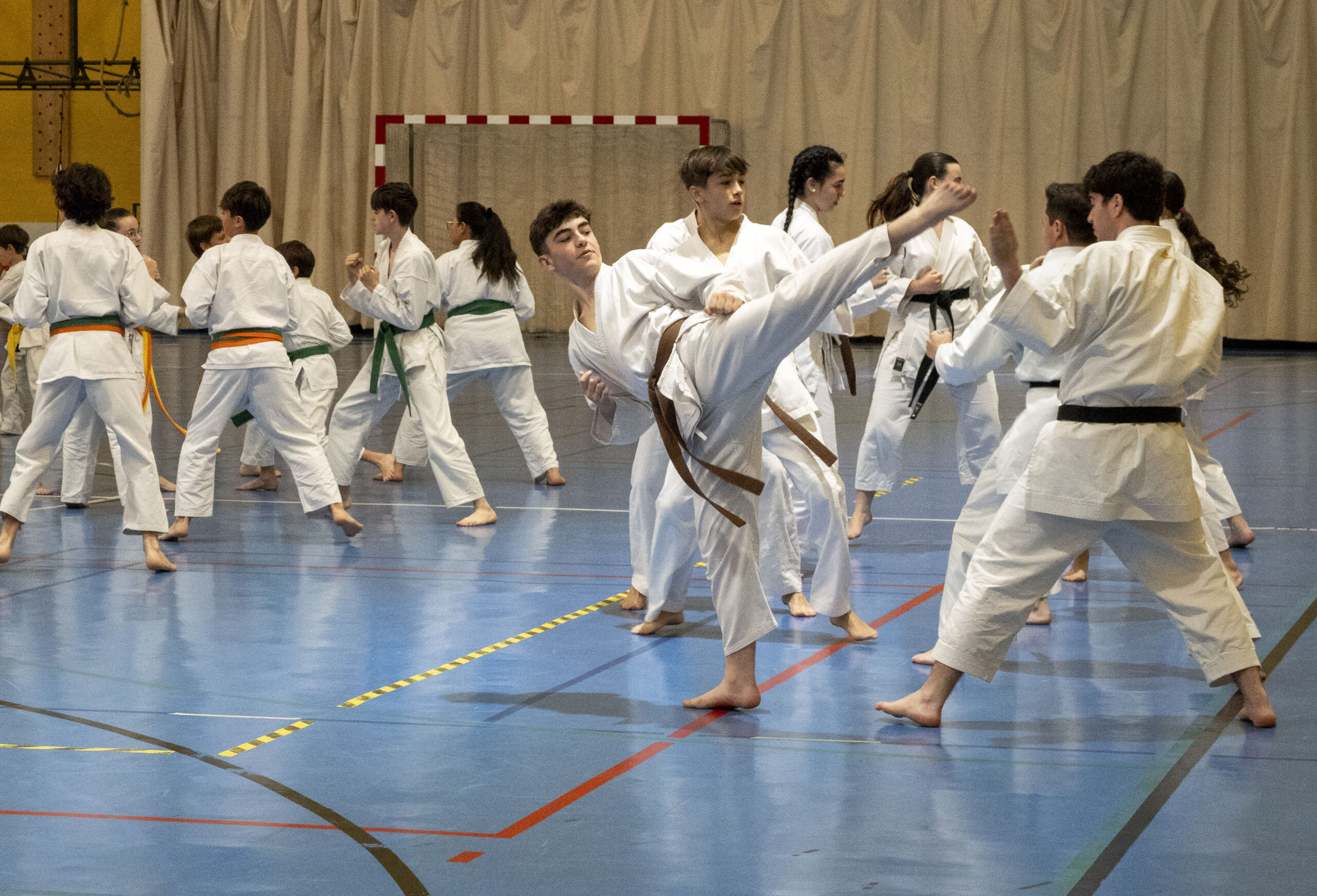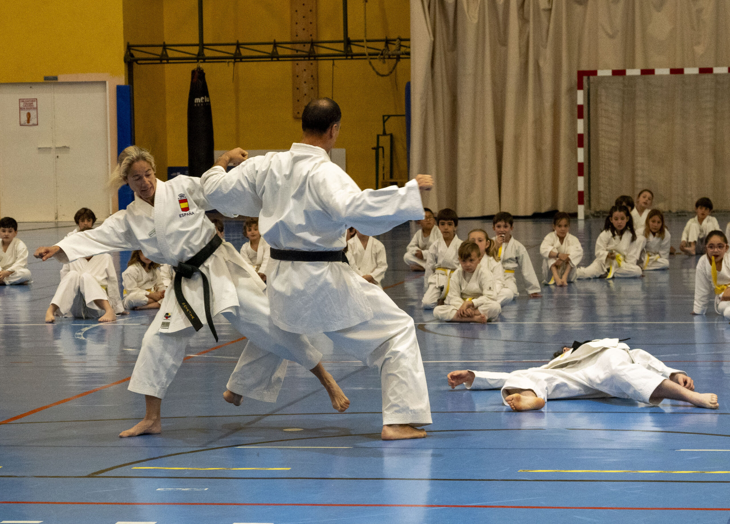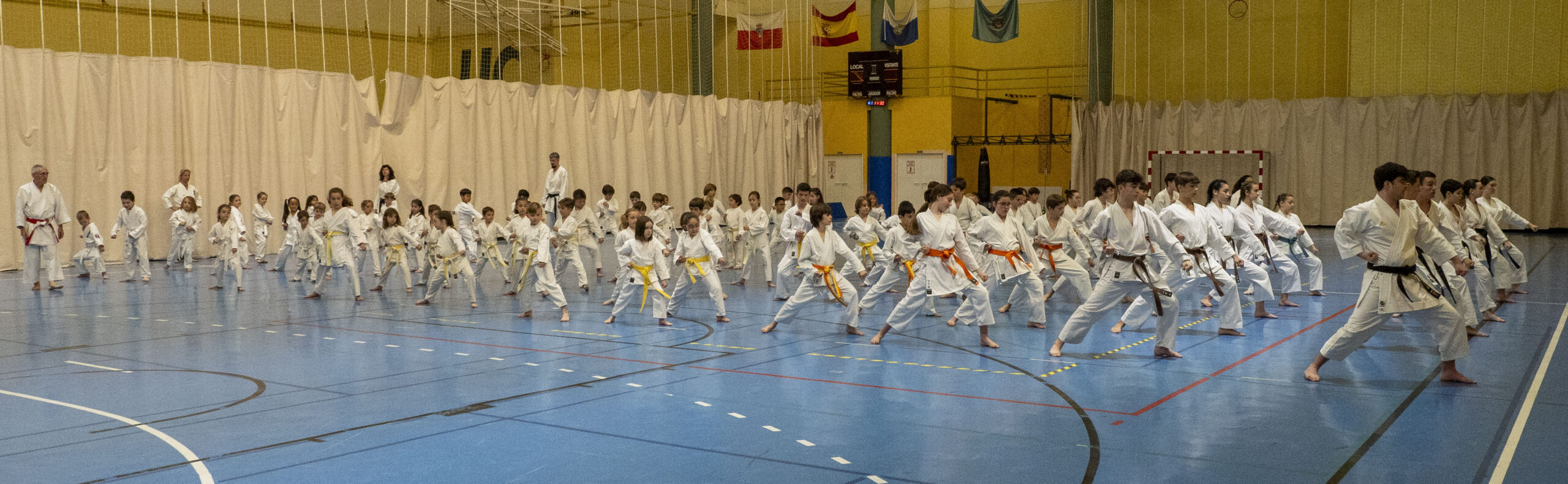 En la ejecución de las diferentes técnicas participaron karatekas de distintos grados, lo que permitió al numeroso público apreciar la evolución y recorrido de este arte marcial a medida que se avanza en su aprendizaje