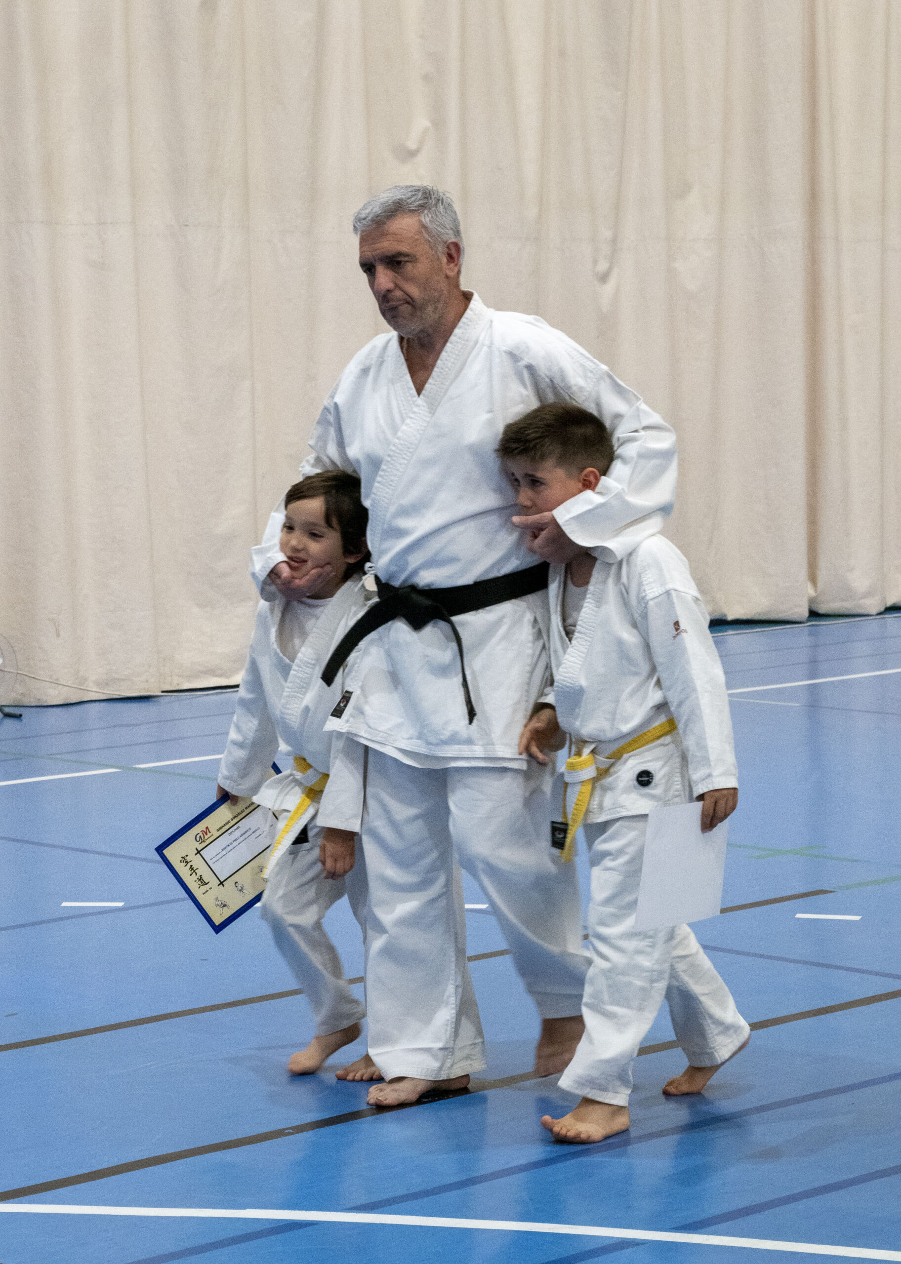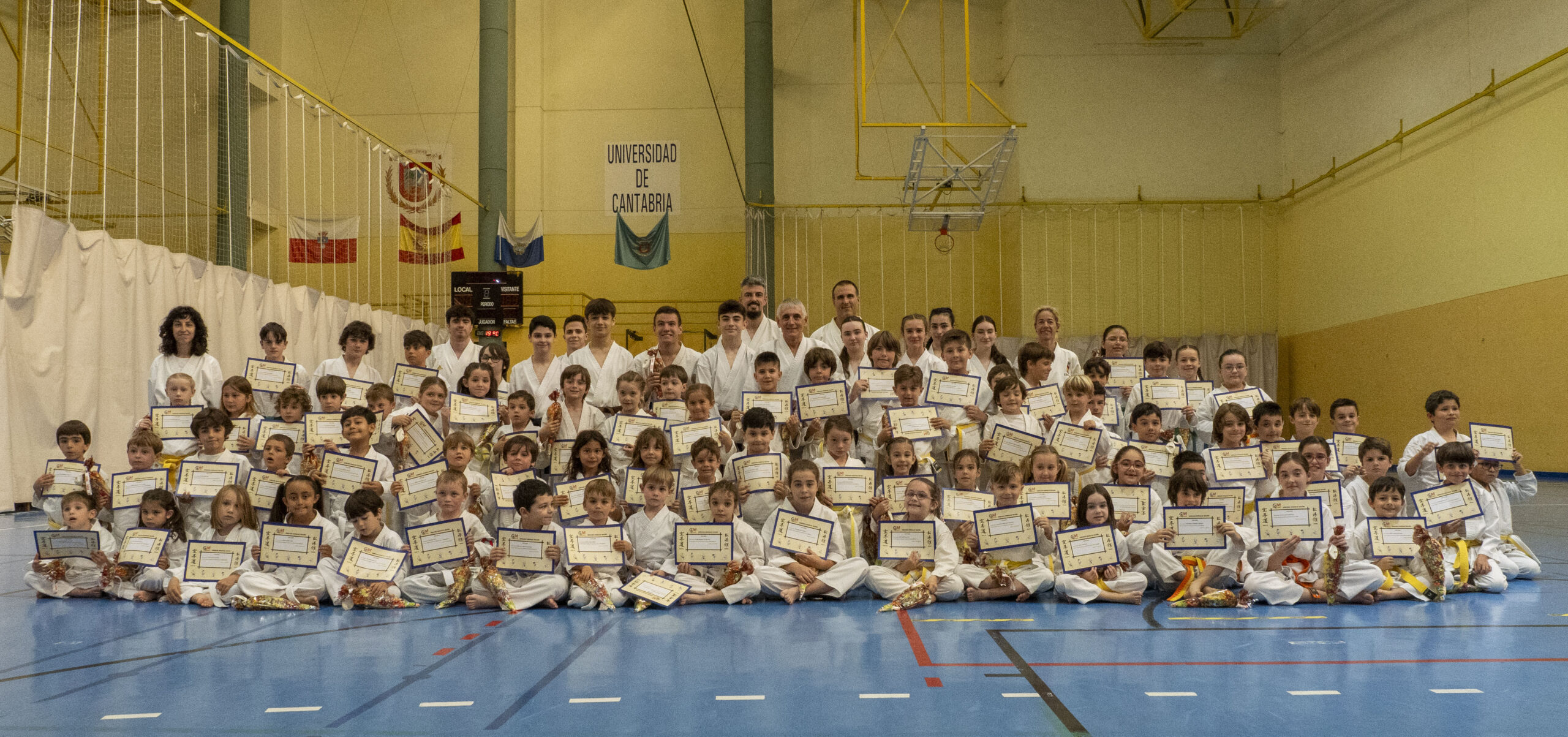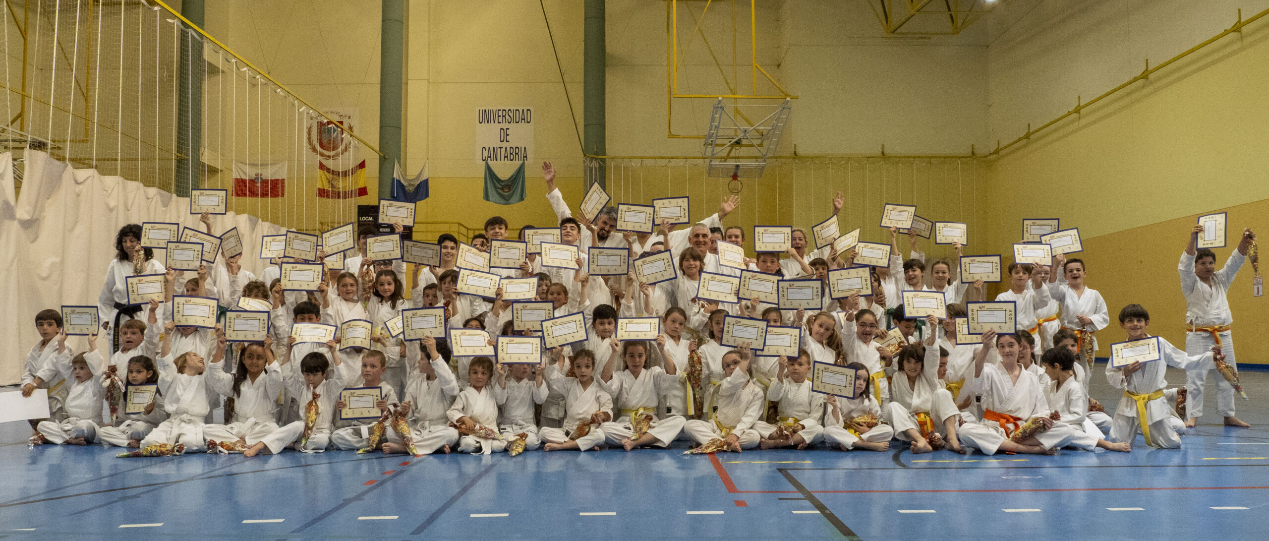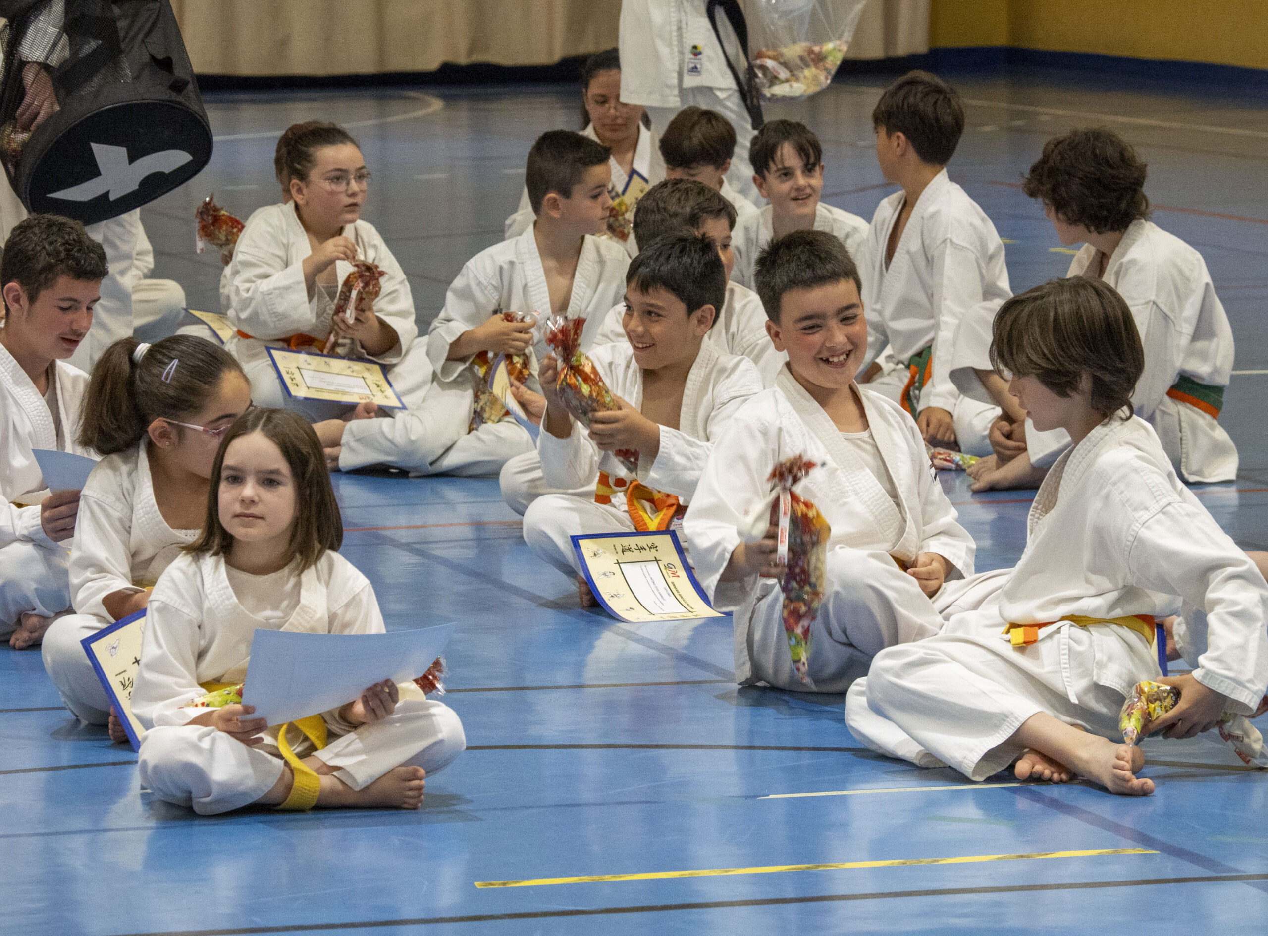 La exhibición finalizó con la entrega de diplomas a los karatekas que han superado sus exámenes de grado y suben de cinturón y la tradicional foto de familia de todos los participantes